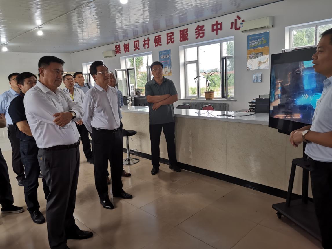 7 月9 日,四平市市委副書記、市長胡斌與北京市兩家民營企業(yè)董事長一同前往梨樹縣梨樹貝村標準化農(nóng)村金融綜合服務(wù)站調(diào)研考察,四平分公司總經(jīng)理榮程學陪同前往。