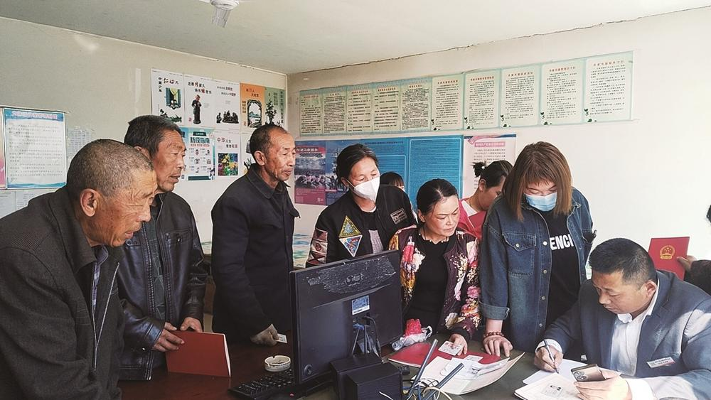 吉農(nóng)金服公司工作人員在村委會(huì)為農(nóng)戶辦理業(yè)務(wù)。